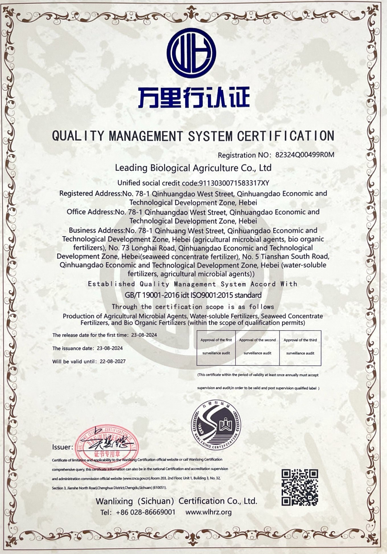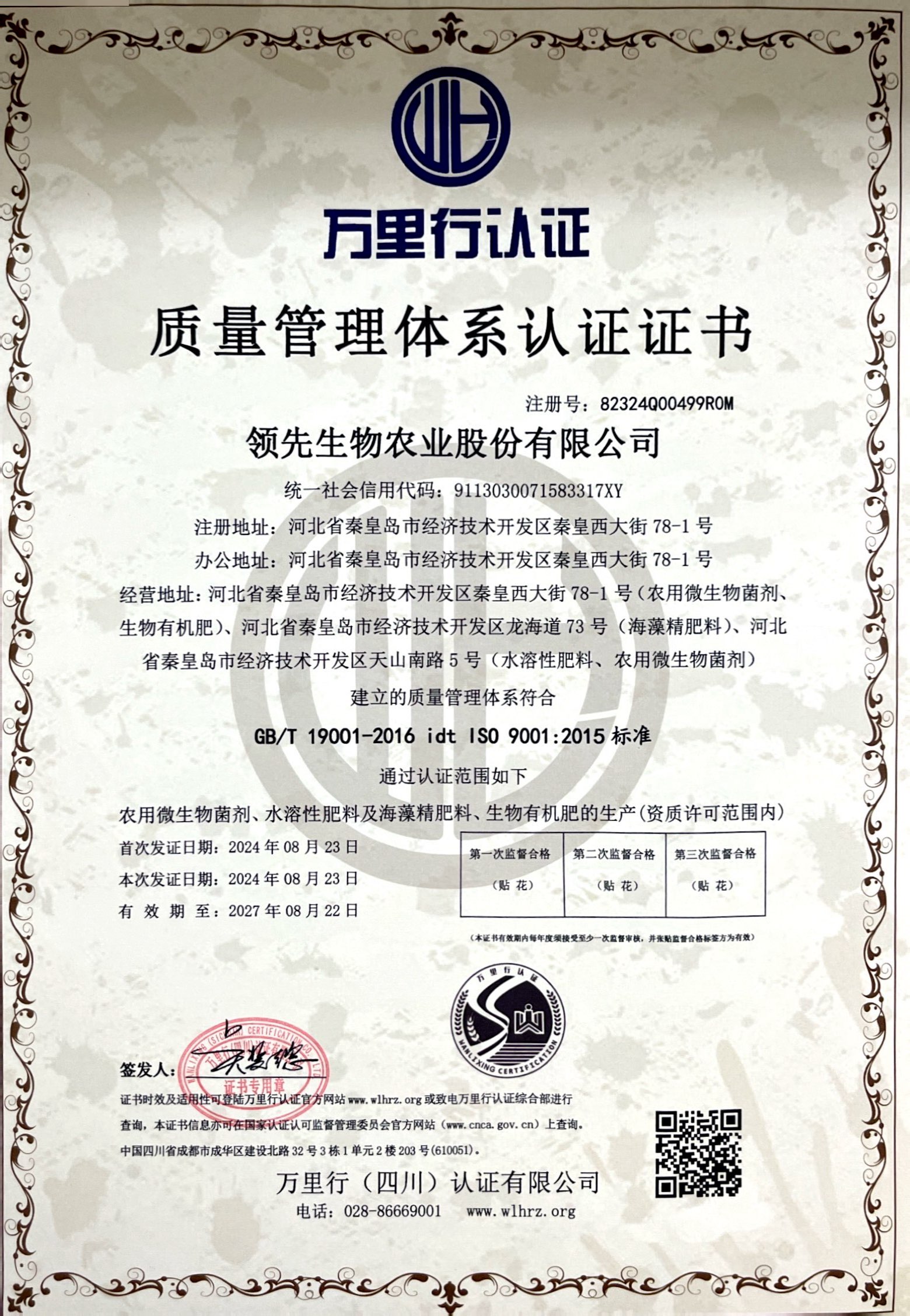 質(zhì)量管理體系認(rèn)證證書