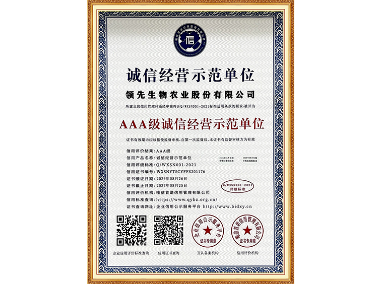 AAA級(jí)質(zhì)量服務(wù)誠信單位