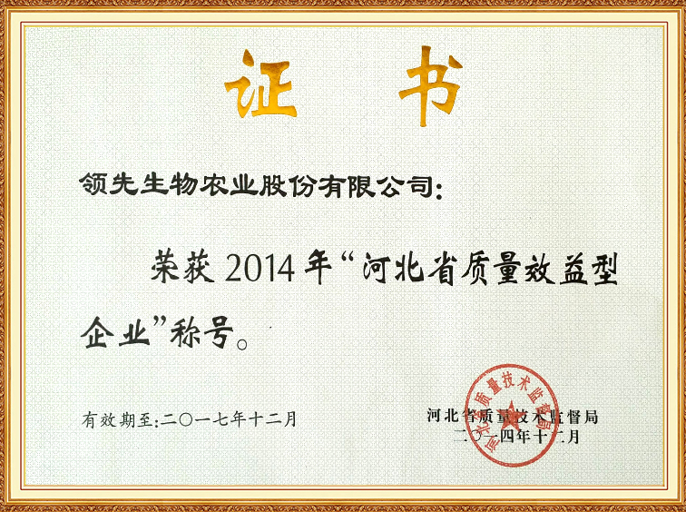 河北省質量效益型企業(yè)證書